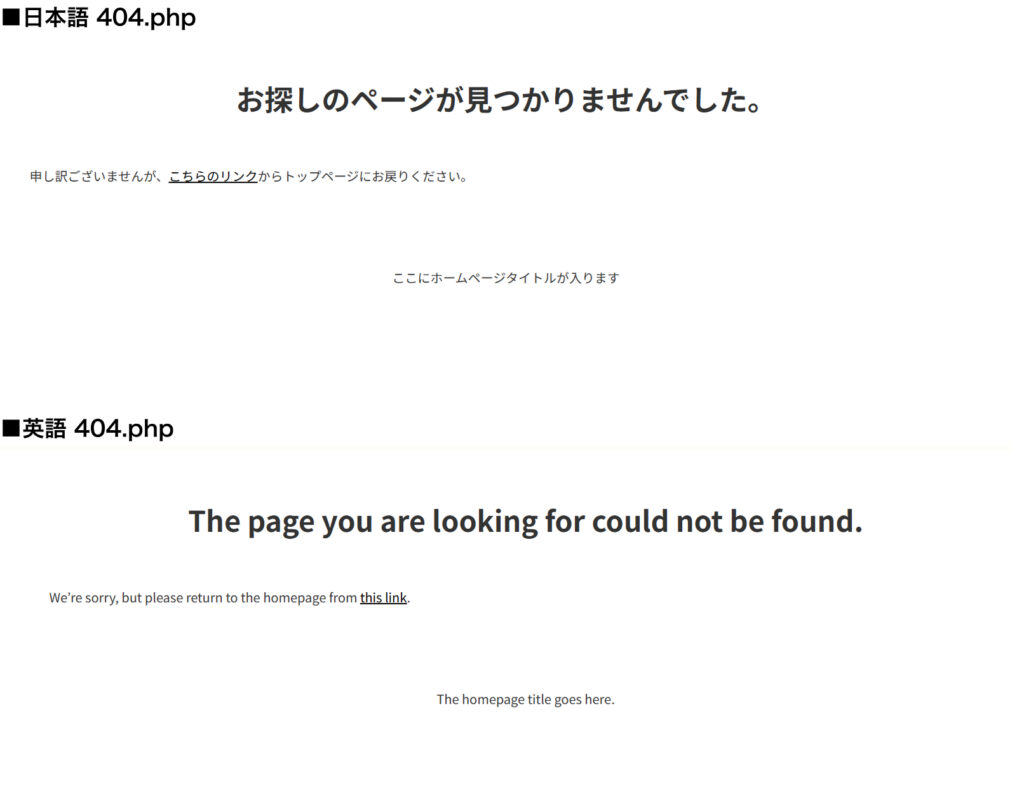 多くの人気テーマでは、アーカイブページ・404ページ・検索結果ページなどがあらかじめ多言語対応されているため、言語を切り替えると自動的に対応する言語へ翻訳されます。