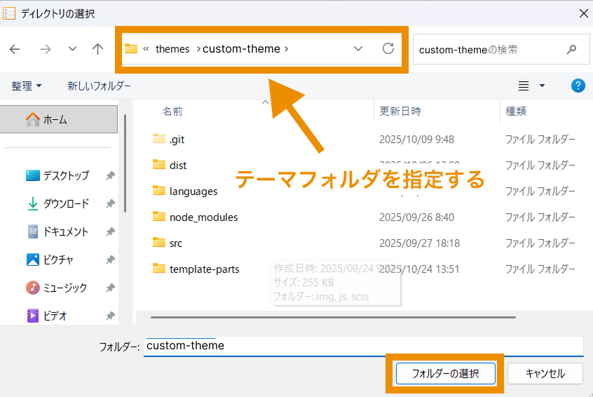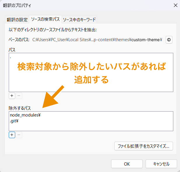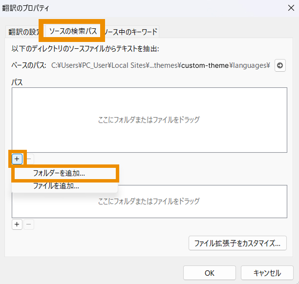 検索対象となるファイルは、テーマ直下の全てのPHPファイルのため、「languages」フォルダの1つ上のテーマフォルダを指定します。