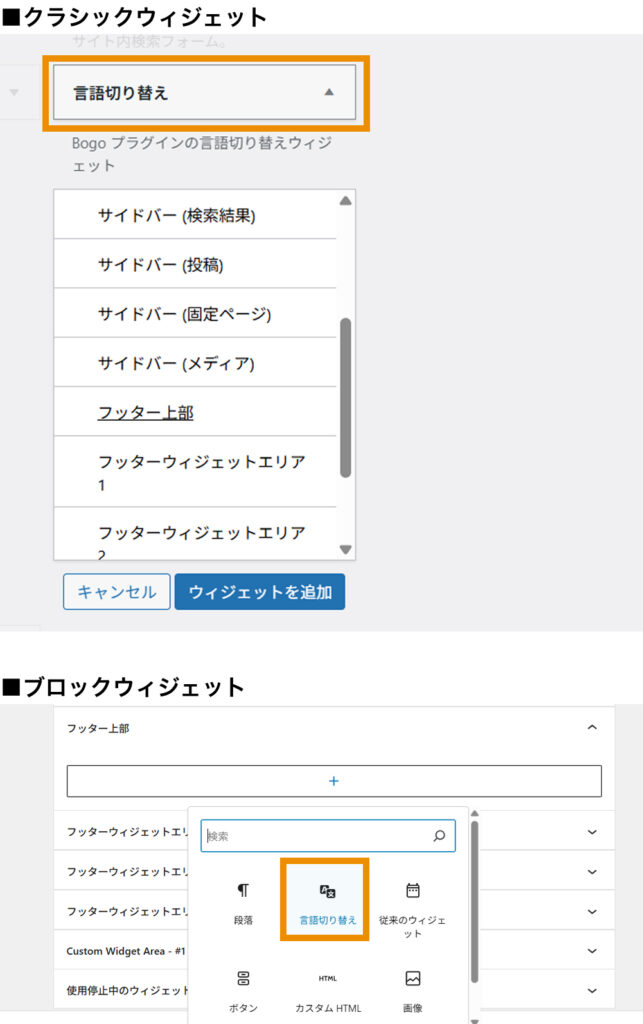 なお、ウィジェットを多言語化するにはWordPress5.8以前のクラシックウィジェットを使う必要があります。