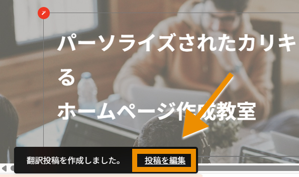 「翻訳投稿を作成しました。」と表示されるので、「投稿を編集」をクリックします。