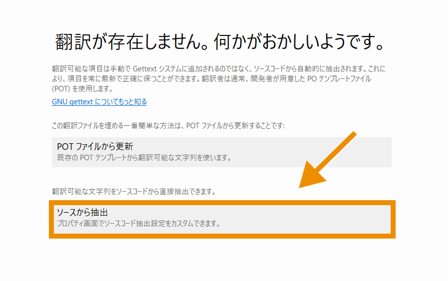 ただし、Poeditにはソースコード(.php など)から直接翻訳文字列を抽出する機能があるため、POTファイルを経由せずにpo/moファイルを作成できます。