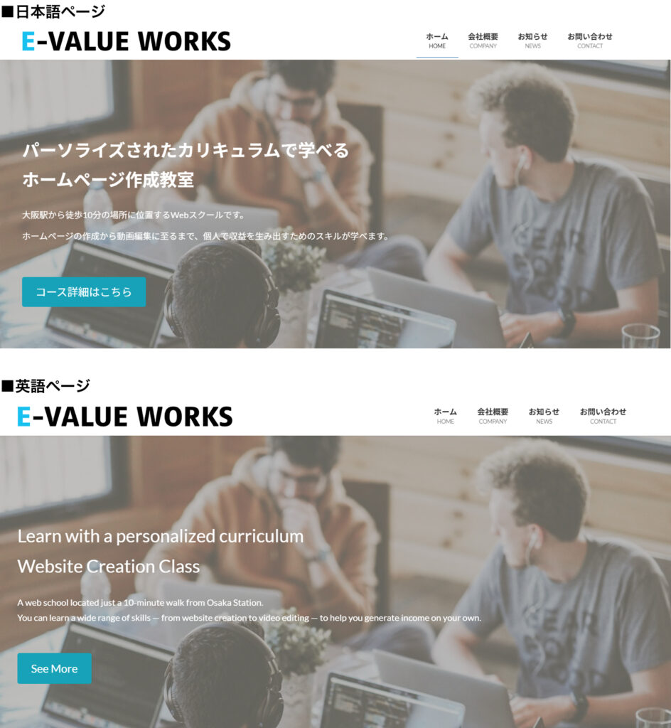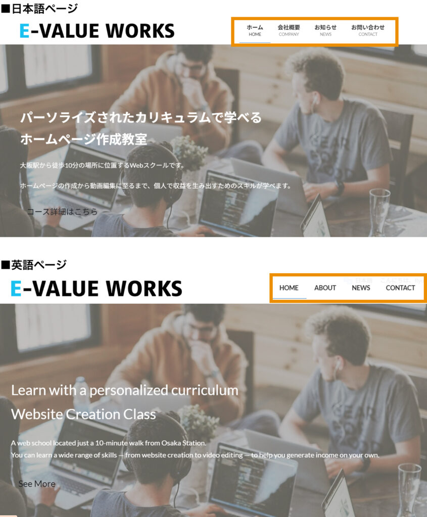 つまり、同じ「アバウト」ページでも、日本語版の「アバウト」と英語版の「ABOUT」のように、言語ごとに個別のページを用意していきます。