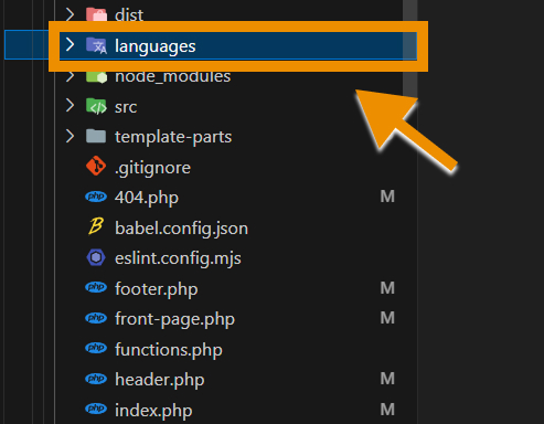 自作テーマの場合は、テーマのアップデートによって上書きされる心配がないため、テーマフォルダ(wp-content/themes/自作テーマ/)直下に「languages」フォルダを作成します。