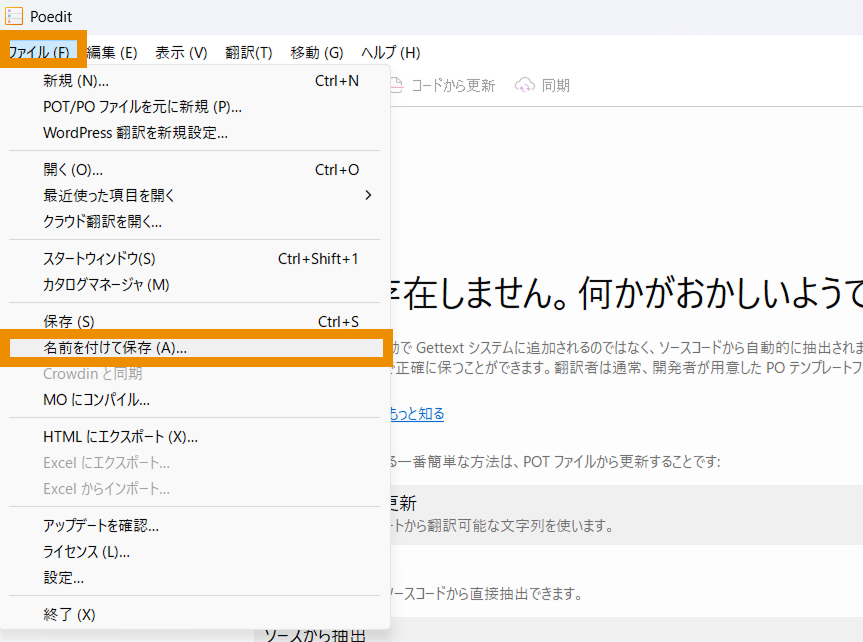 続いて、STEP. 2で作成したフォルダ内にpo/moファイルを作成していきます。
