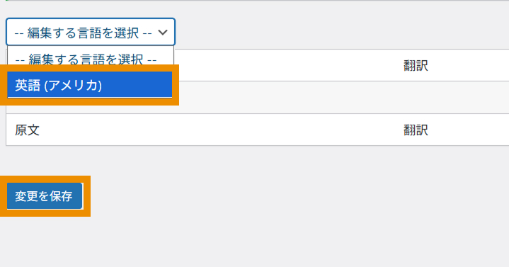 「編集する言語を選択」のところで、言語を選択し「変更を保存」をクリックします。