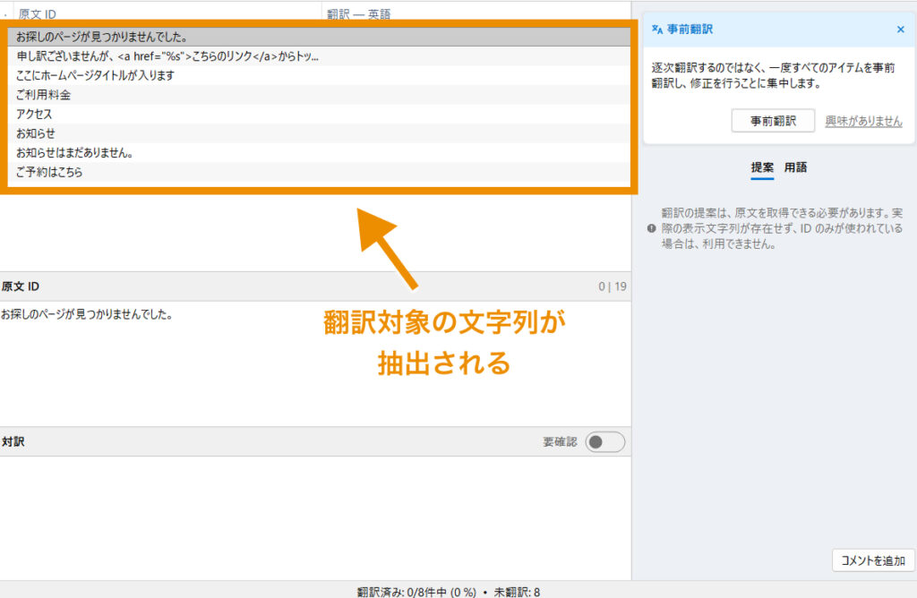 あとは、抽出されたテキストを1つづつ翻訳していきます。