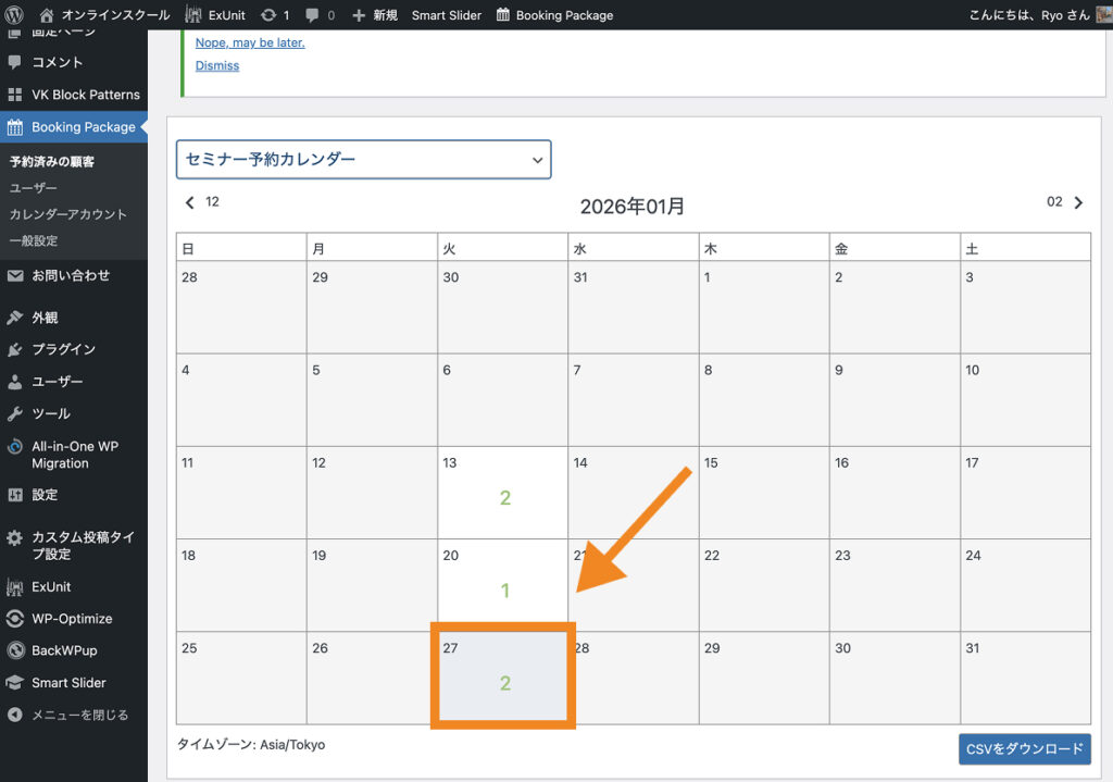 Booking PackageはWordPressのダッシュボード上からダウンロードできます。