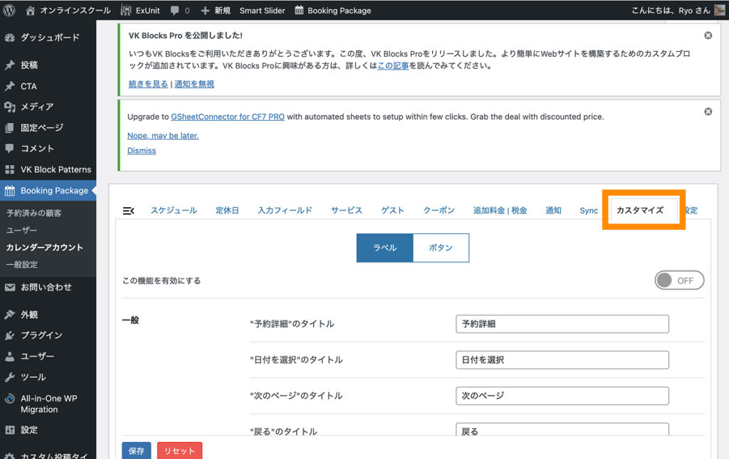 まずは、Booking Packageの初期設定を行いましょう。
