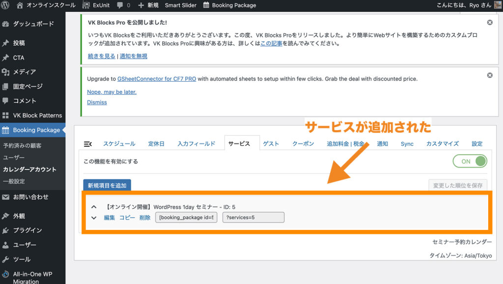 今回は、「【オンライン開催】WordPress 1day セミナー」というサービスを1つ追加します
