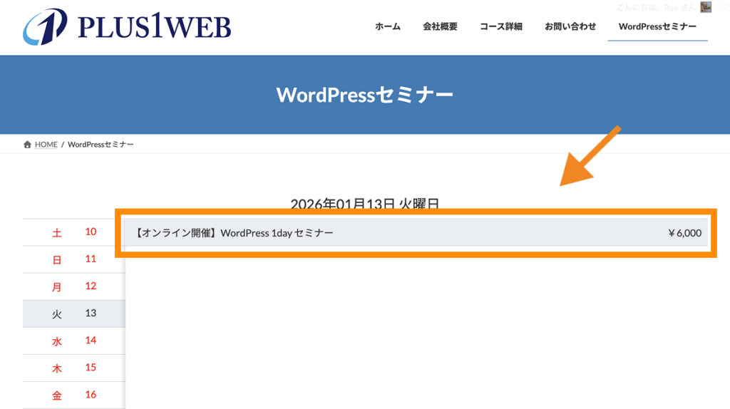 今回は「【オンライン開催】WordPress 1day セミナー」と設定します。
