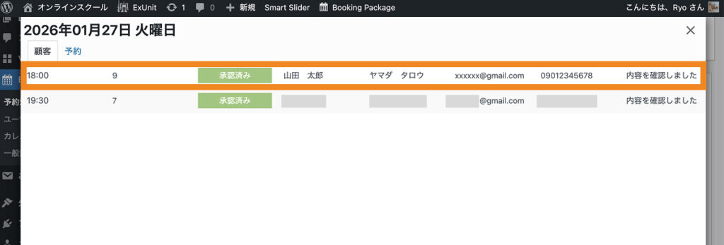 予約者の名前をクリックします。