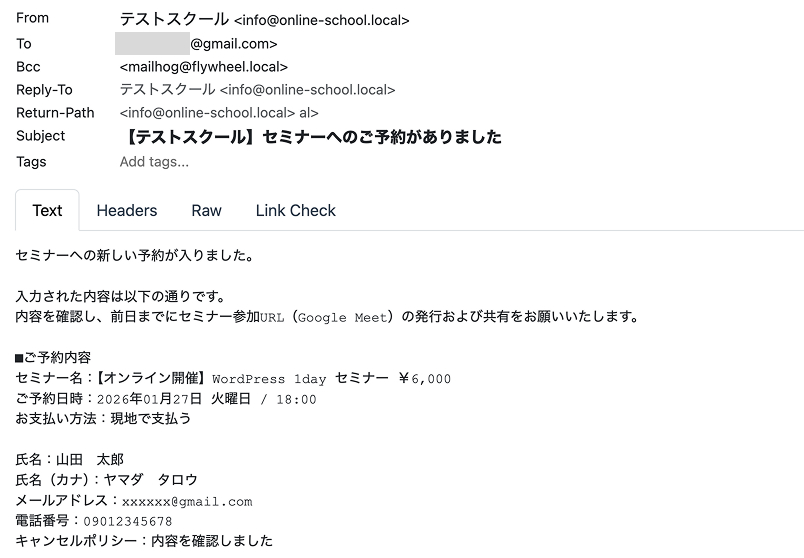 セミナーへの新しい予約が入りました。
