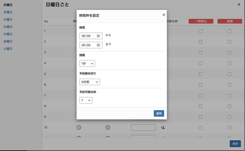 「1」と設定すると、前日まで予約が可能になります。