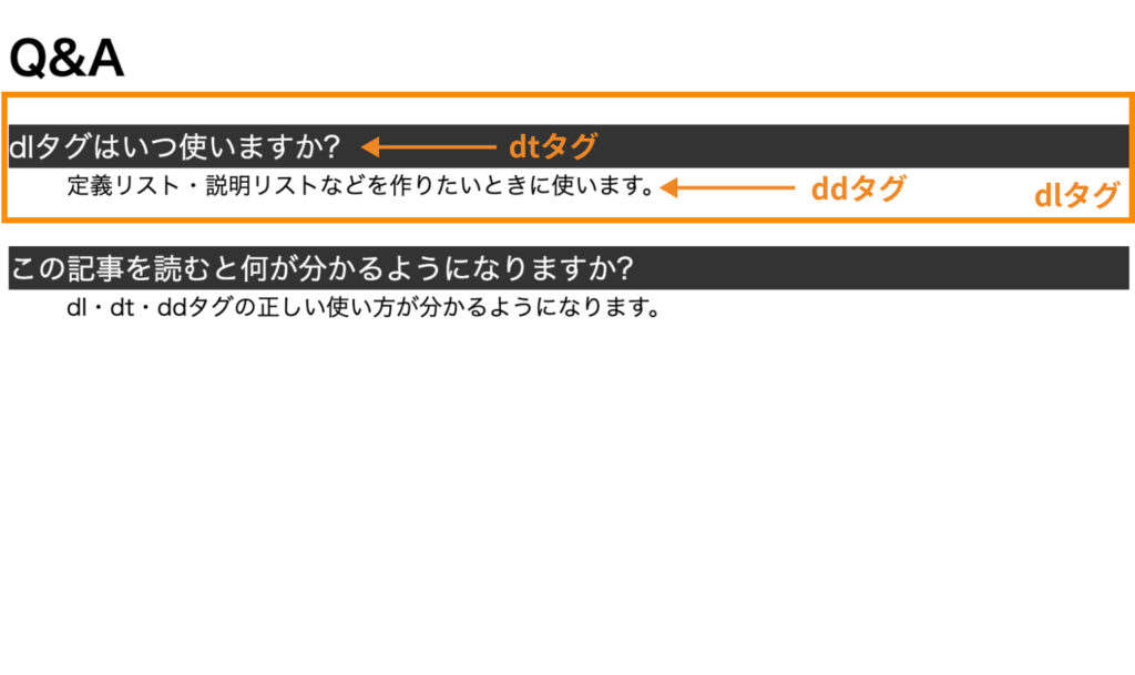 </dl>参考:ある用語を定義したい場合はdfnタグを使用する