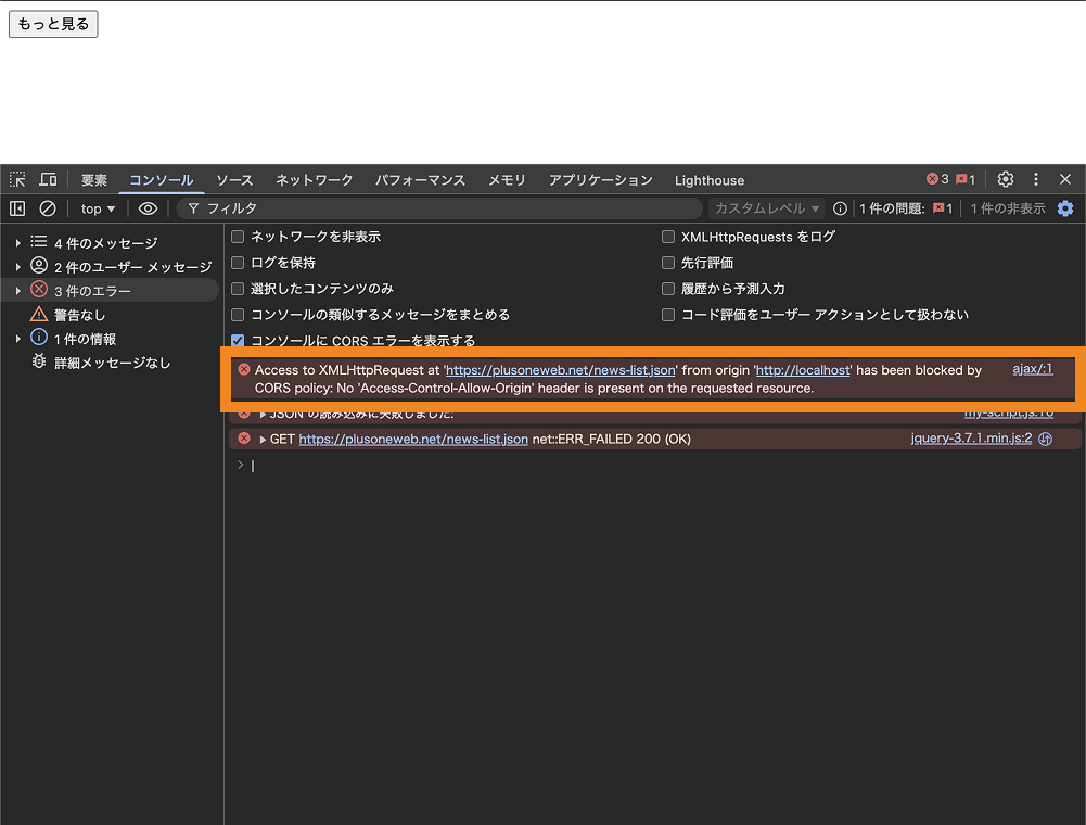 自分が管理していないサーバーで CORS が許可されていない場合、ブラウザから外部APIへ直接アクセスすると、同一オリジンポリシーによってリクエストがブロックされます。