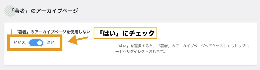 著者アーカイブページでは、アーカイブページを使用しない設定にしておくのがおすすめです。