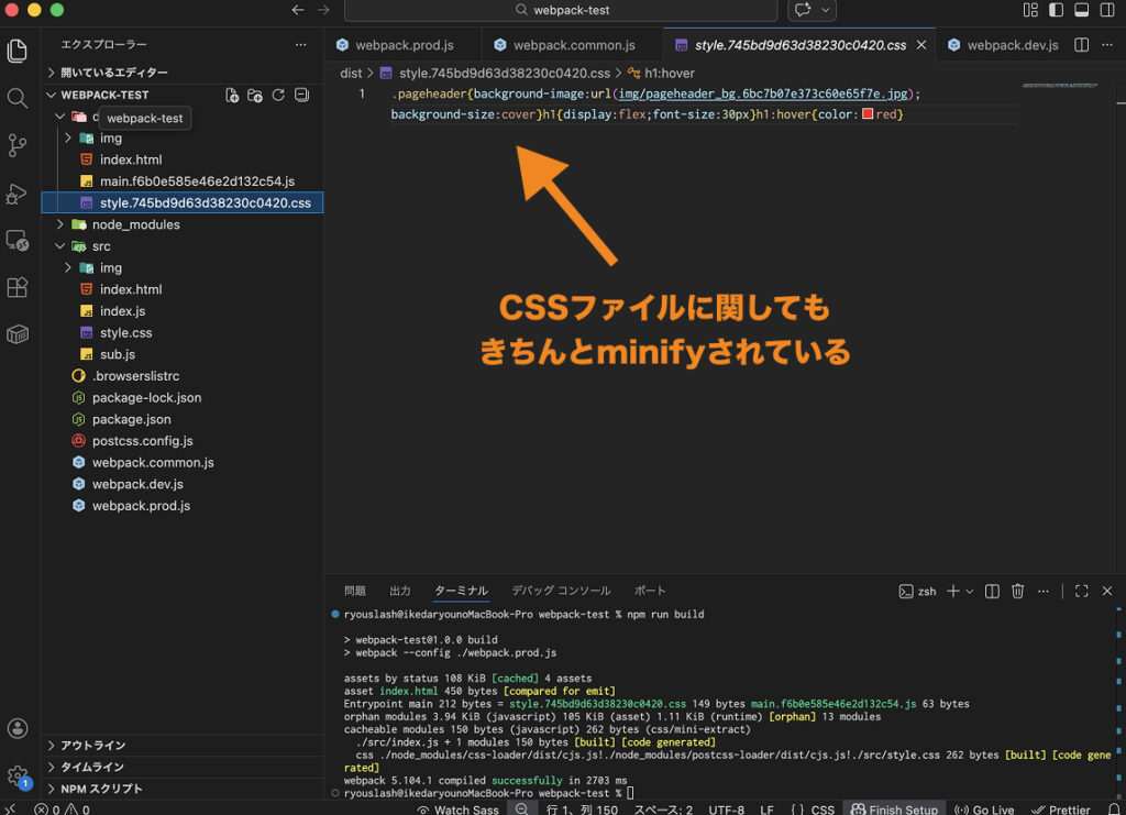 今回は、WebpackでCSSファイルをminify(ミニファイ)する方法を解説しました。