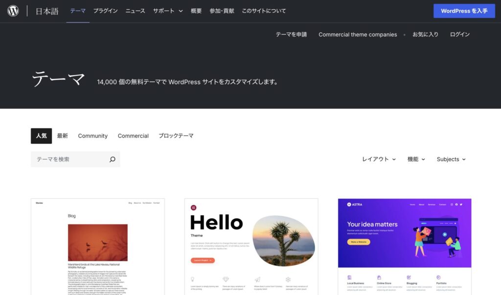 WordPressには10,000を超えるテーマと呼ばれるデザインテンプレートが用意されており、これを変更するだけで全体的なデザインテイストを変更できます。