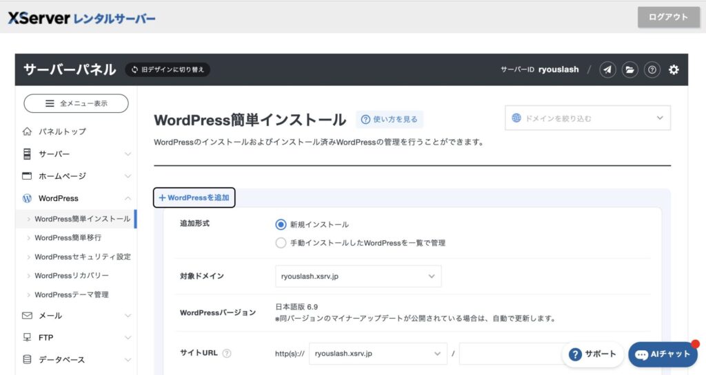 最後に、サーバー上にWordPressをインストールします。